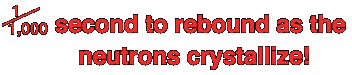 After the initial compression of the neutron core, neutrons arrange themselves in a crystalline structure which suddenly expands. The surface of the neutron core bounces back at 15% of the speed of light against the huge overlying weight of the star. This causes a powerful shock wave to move outward, ripping though the rest of the star. From the time the core rebounds it takes about 3 hours for the supersonic shock wave to reach the star's surface, the surface of the neutron core bounces back at 15% of the speed of light against the huge overlying weight of the star. This causes a powerful shock wave to move outward, ripping though the rest of the star. From the time the core rebounds it takes about 3 hours for the supersonic shock wave to reach the star's surface ..... |