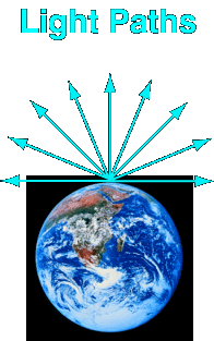 The space-time warp that earth causes is so small that light beams appear to go in straight lines. In other words, where you point a flashlight is where the light goes. And the light from far away stars arrives in our sky as steady pin-pricks of light. When you take a plane trip or even go to the moon the stars do not appear to shift around (as distant trees do when you drive in your car) because the stars are incredibly far away and because space-time in the solar system is fairly flat.