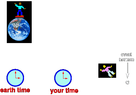 As you cross the event horizon, you realize that something significant has changed. Space-time is so warped as you get closer to the singularity, that space and time become inverted. You can no longer move in space, but you can move anywhere you want in time! Yet outside the event horizon back on earth, eternity has already passed.