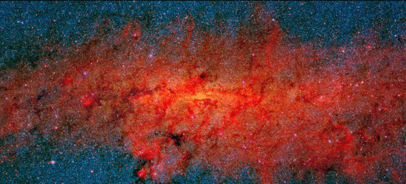 But in infrared light we can see deeper to the center, and in radio light, the view of the center is virtually unobstructed. ....