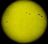 Compare this true-color image of the sun with an image of the sun taken in ultraviolet light (middle). The bright spots in this image show regions of increased activity.